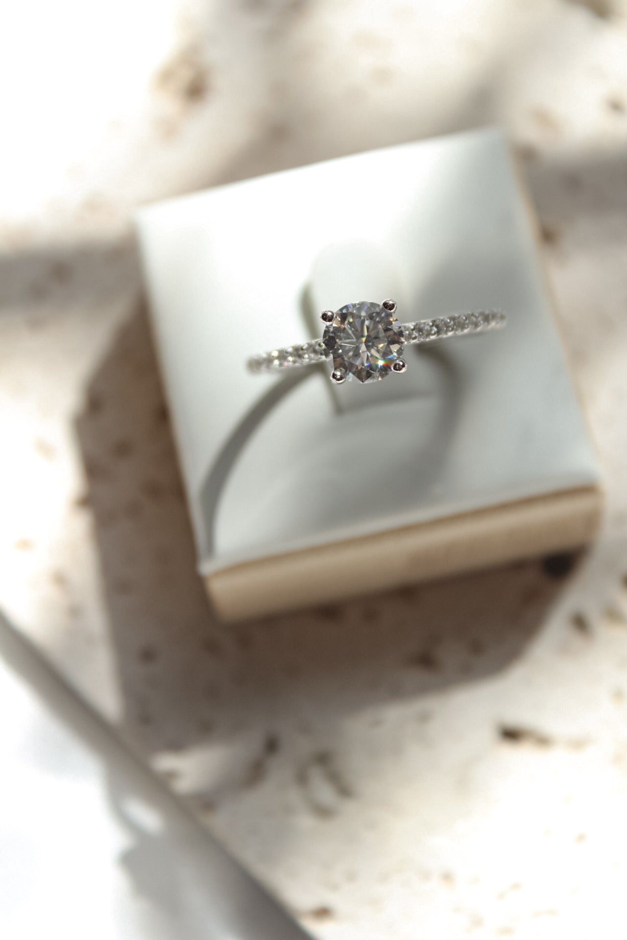 Firstly the Bella ring is amazing . Its extremely beautiful and sparkly . The moissanite is very high quality it sparkles and shines . I admit in pictures and videos it look plain or small but in reality it's just gorgeous and eye catching .